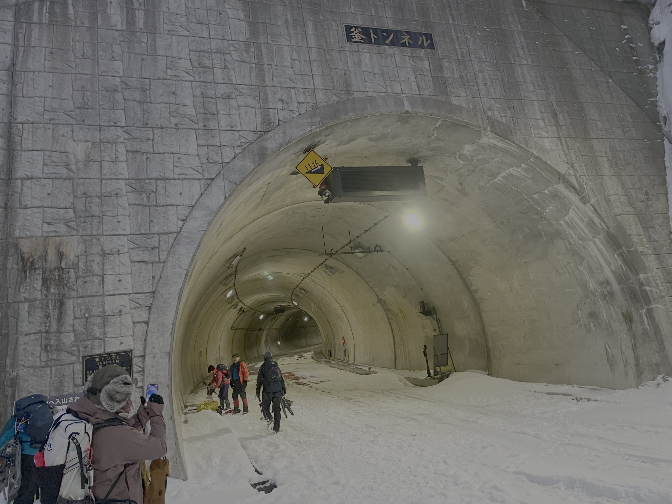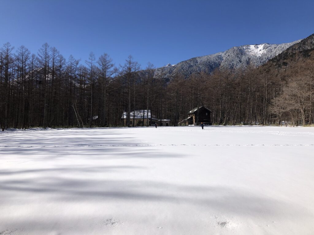 冬、釜トンネルは車両通行止めとなるため、上高地へは歩いてしか入ることがきません。