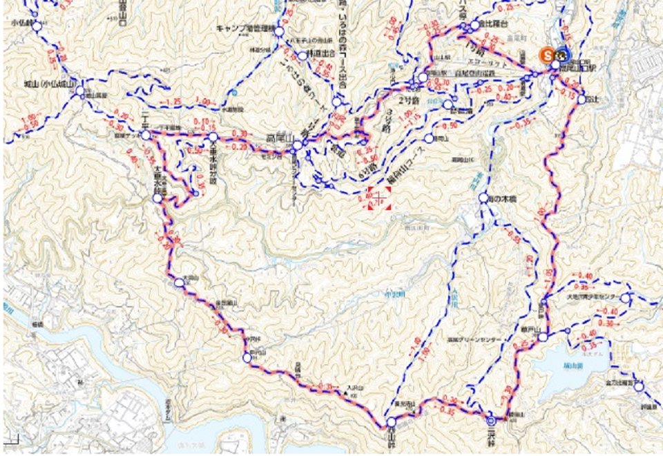 高尾山を時計まわりにちょうど1周することになります。